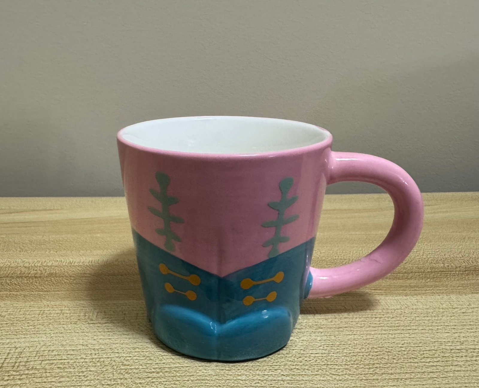 This small Nutcracker mug features a pastel pink and blue soldier design, complete with adorable sculpted boots at the base.